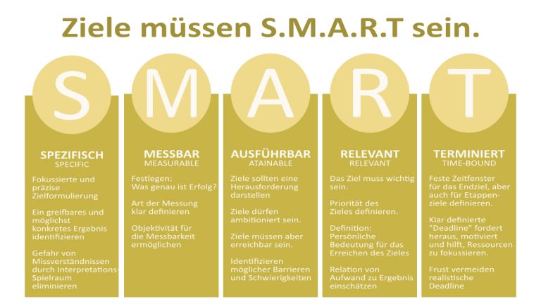 Der Unterschied zu unklaren, schwammigen und demotivierenden Zielen besteht in folgenden fünf Anforderungen: